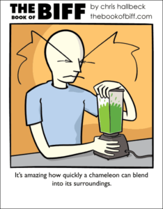 Posts tagged chameleon 1 results#1510 – CreamyBy Chris on April 2, 2012 at 12:00 amChapter: ComicsTags: blender, chameleon, he's making pea soup, it's on the orange wall, you are gross