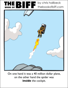 Posts tagged ejection seat 2 results#1577 – EjectedBy Chris on July 4, 2012 at 12:00 amChapter: ComicsTags: ejection seat, jet, spider#1325 – ThunkBy Chris on July 18, 2011 at 12:00 amChapter: ComicsTags: ejection seat, head injury, overpass